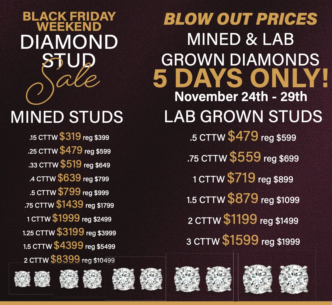 For 5 days only, enjoy blowout prices on both mined and lab-grown diamond studs โ just in time for Black Friday!