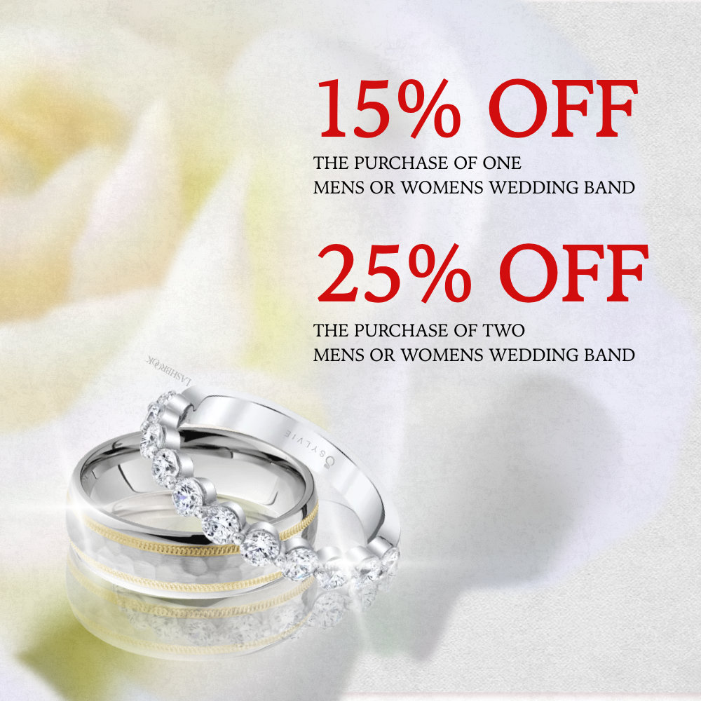 For three days only enjoy up to 25% off on wedding bands at Rose Jeweler!